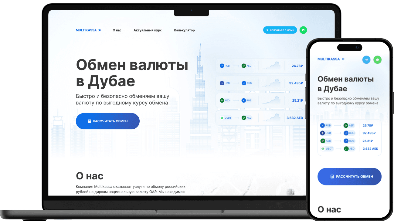 Entwicklung einer Website und Start der kontextuellen Werbung für eine Wechselstube in Dubai.